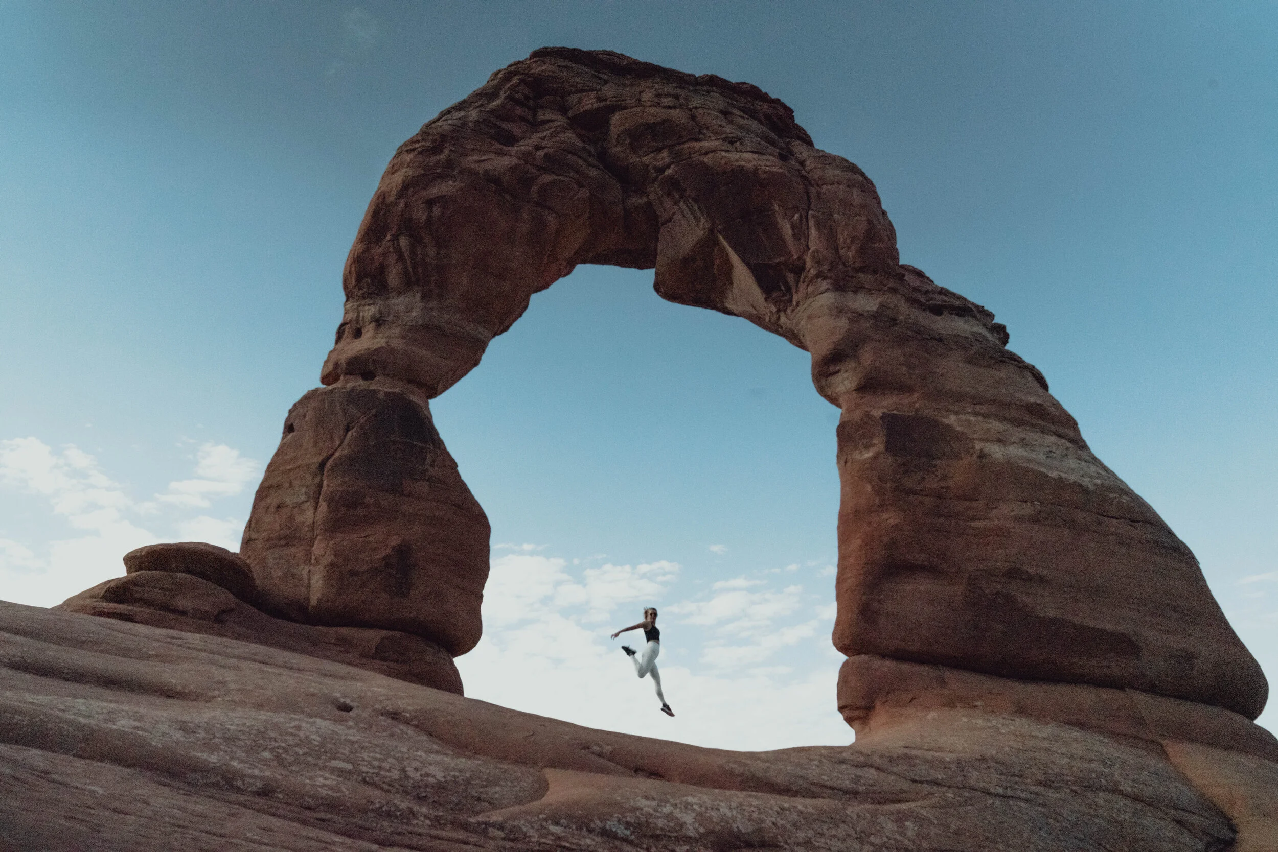 Corona Arch is a 15 minute drive from Moab’s city center, past some killer rock climbing spots, on the Colorado River (Yes the same Colorado Rover!) We made it just in time to go eat dinner and then head off to this spot for sunset! The hike itself was very manageable. Its almost 3 miles in&out and the trail was marked well since you are traversing along big slabs of rock. There is one point where you have to navigate up a makeshift ladder but that is the only point. One you are there, the view is incredible. It’s like you are sitting up on a big bowl over the valley.